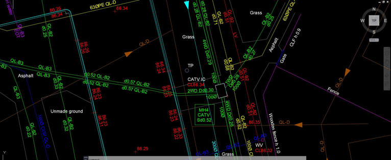 A plan (2D) view of our CAD processing and modeling where the data was collected and provided by our client and the data has been processed as per their required standard.